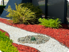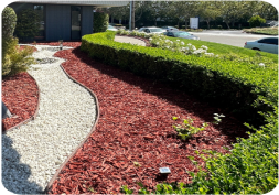 Over 1,200 cubic feet of premium red mulch weave through our grounds, enhancing both aesthetics and sustainability. Additionally, 25 gallons of mulch glue were used to ensure its strength and enduring quality. The red color isn't just for looks – it also helps regulate soil temperature, retains moisture, and prevents weed growth!